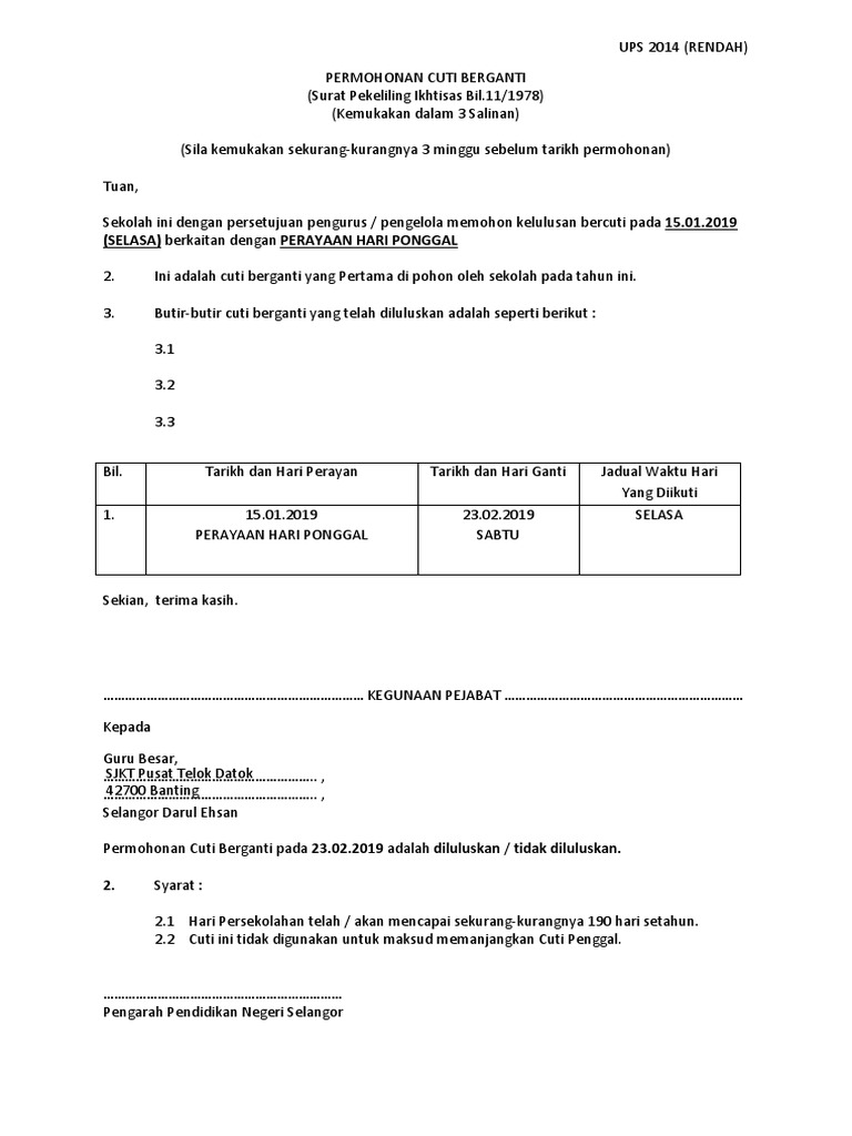 Guru ganti adalah guru tidak terlatih yang ditempatkan di suatu sekolah bagi mengisi kekosongan sementara guru tetap disebabkan cuti bersalin, cuti sekian, semoga perkongsian pada kali ini iaitu permohonan guru ganti sekolah rendah dan menengah 2020 kini dibuka memberikan informasi. Permohonan jawatan guru ganti di bawah adalah dari jabatan pendidikan negeri perak. Anda boleh terus dapatkan borang permohonan guru ganti di mana gaji akan diberikan mengikut kelayakan anda, ikuticara yang tepat berdasarkan pengalaman. Permohonan adalah dipelawa daripada warganegara malaysia berumur 18 tahun ke. Pengambilan guru ganti kementerian pendidikan malaysia secara online. Sihat tubuh badan dan tidak cacat pancaindera. Klik permohonan secara online di sini. Jawatan kosong terkini kementerian pendidikan malaysia. (sekolah rendah) nama sekolah : Berikut merupakan maklumat iklan jawatan kosong yang ditawarkan oleh majikan terlibat. Dalam pembahasaan, surat permohonan ini juga bisa diganti tajuknya menjadi surat penawaran, surat permintaan, dan sebagainya. Borang guru ganti bersalin kafa. Pengambilan guru ganti untuk ditempatkan di sekolah rendah dan menengah.